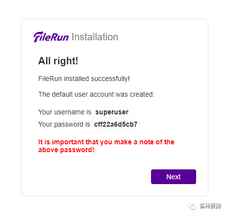 FR_DB_USER | 数据库用户,默认为 filerun,保存不变 |