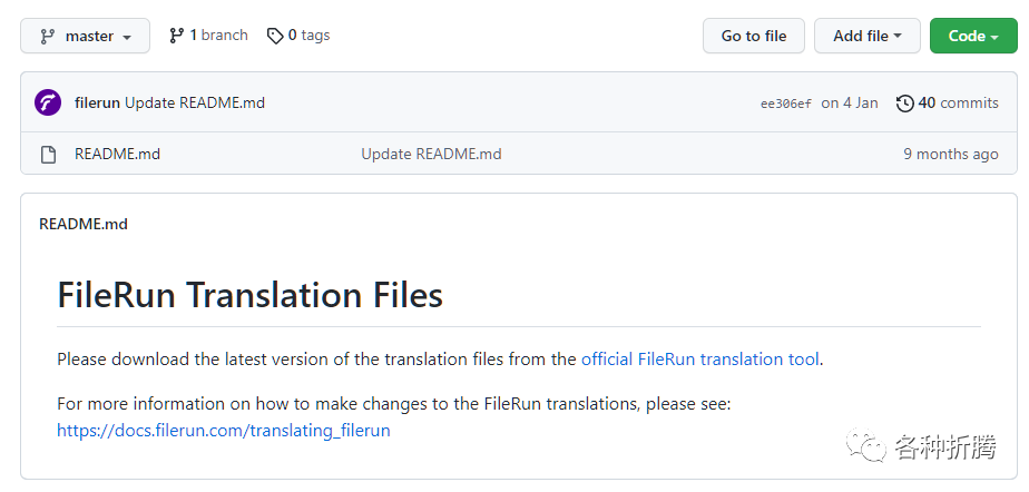 官方提供的语言包地址是:https://github.com/filerun/translations,但是现在这里什么都没有