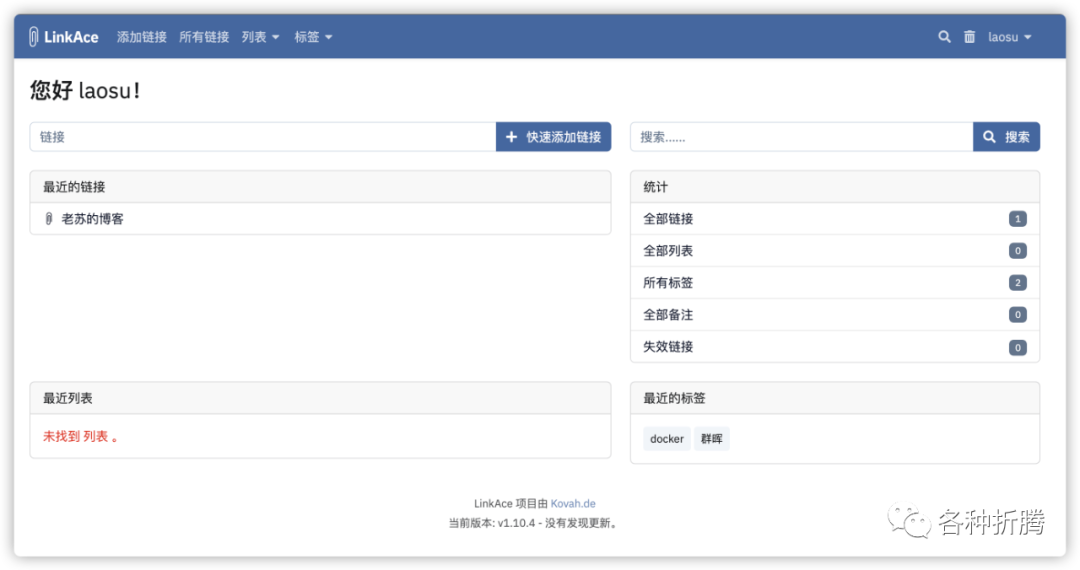 的安装,你可以在 https://github.com/Kovah/LinkAce/releases/tag/v1.10.5 找到官方提供的安装样板文件,当然你也可以跟着老苏一步一步操作
