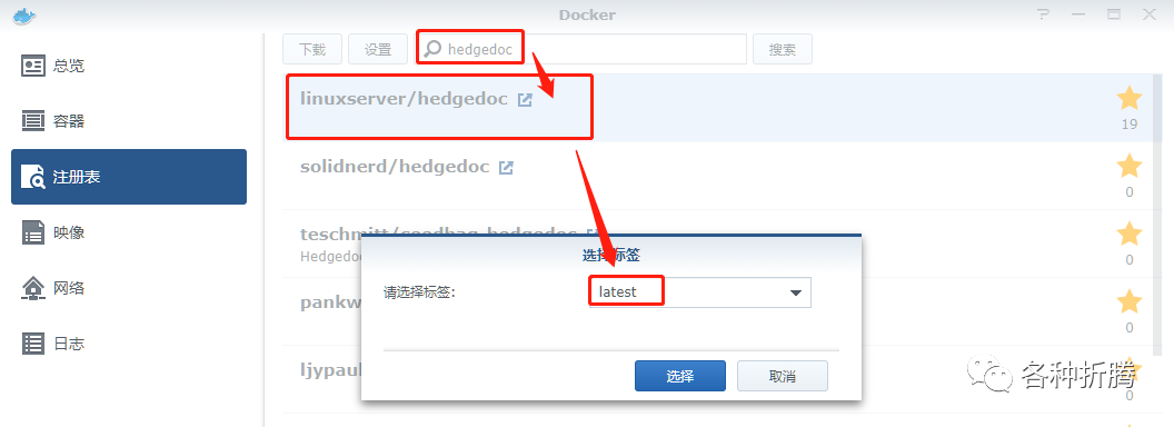 ,选择第一个 linuxserver/hedgedoc