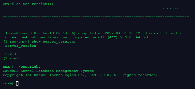 2.在gsql中查看数据库的版本、pg基础版本和版权信息