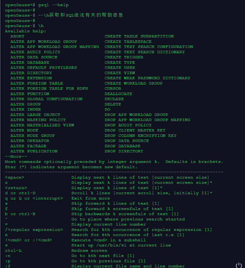 gsql是openGauss提供在命令行下运行的数据库连接工具,可以通过此工具连接服务器并对其进行操作和维护,除了具备操作数据库的基本功能,gsql还提供了若干高级特性,便于用户使用。