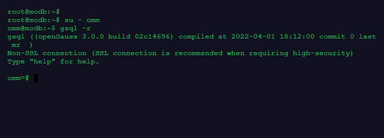 omm=# Non-SSL connection (SSL connection is recommended when requiring high-security)