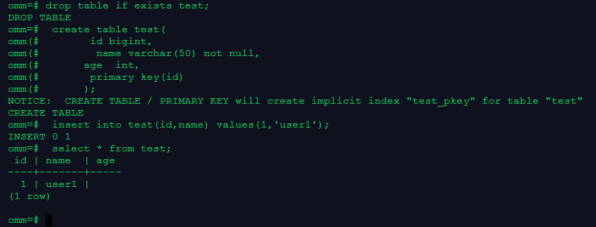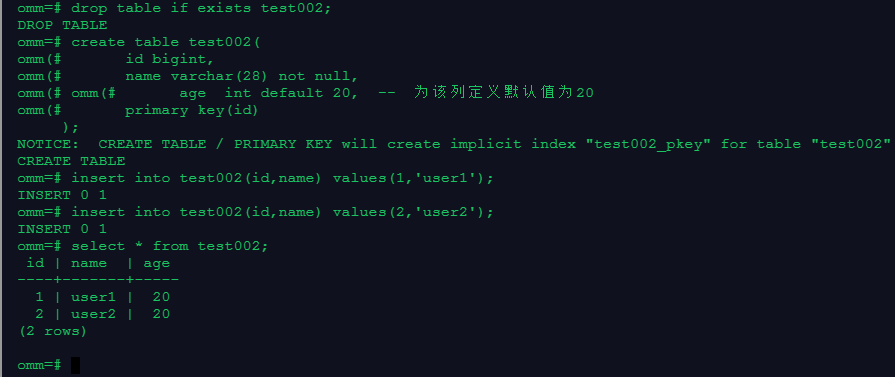 --下面的SQL insert语句,在向表test插入数据时,没有提供age列的值: