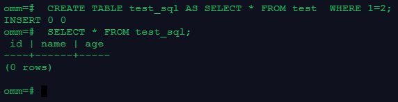 CREATE TABLE test_sql AS SELECT * FROM test WHERE 1=2;