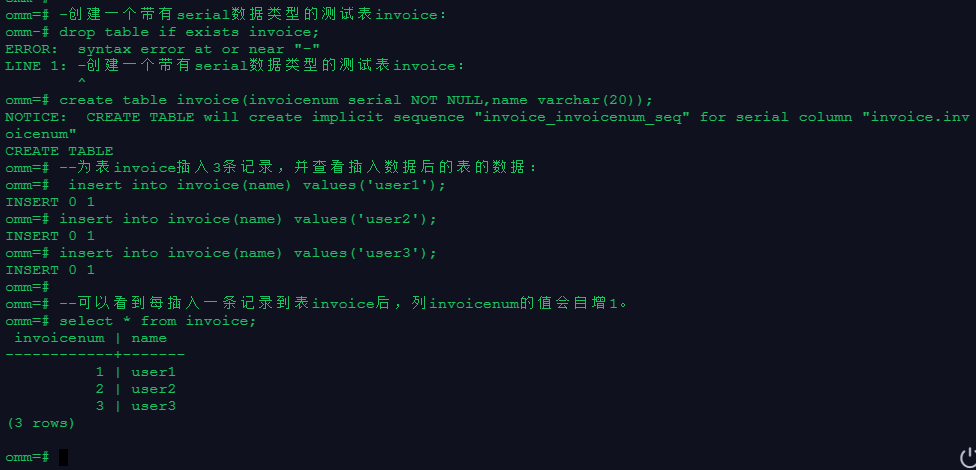 create table invoice(invoicenum serial NOT NULL,name varchar(20));