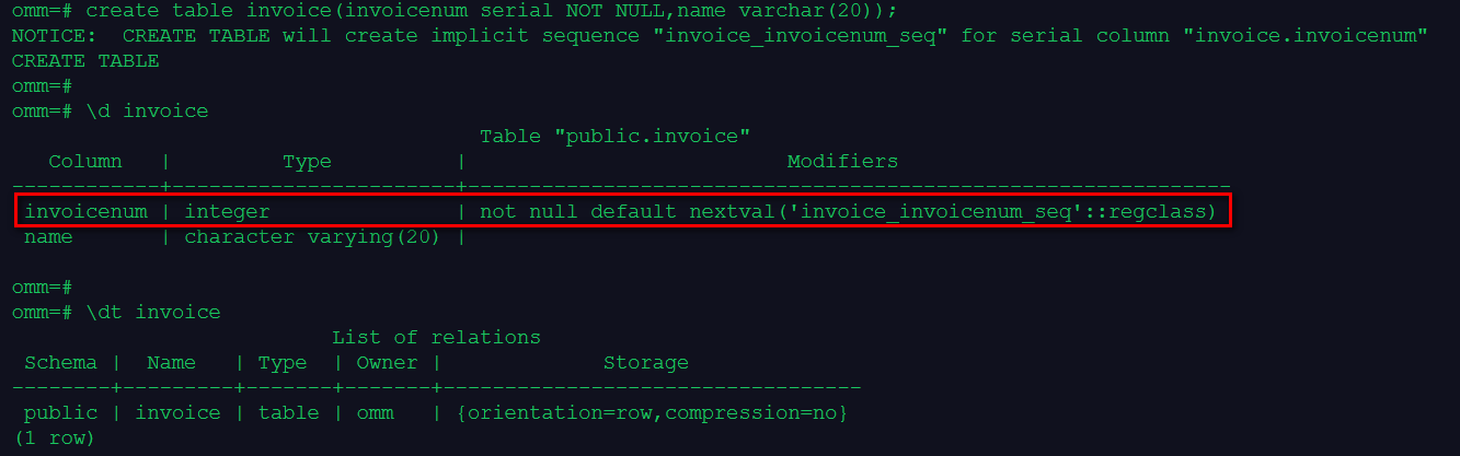 create table invoice(invoicenum serial NOT NULL,name varchar(20));