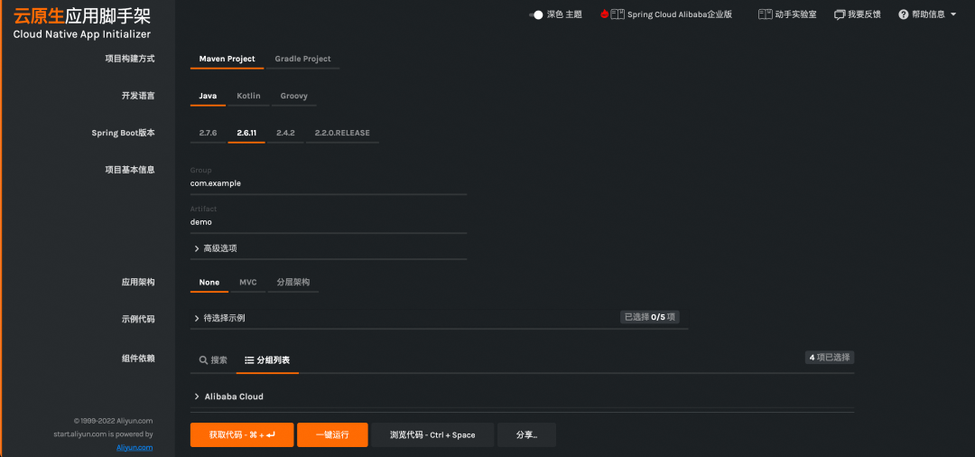 点击阅读原文,进入 GitHub 链接: https://github.com/alibaba/cloud-native-app-initializer
