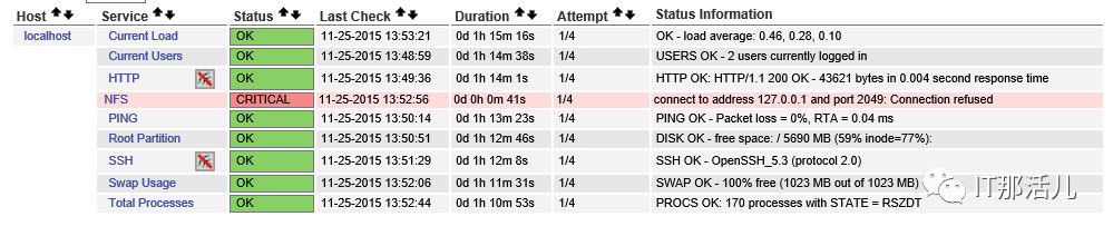 Nagios 依次读取队列中的信息,再把结果显示出来。