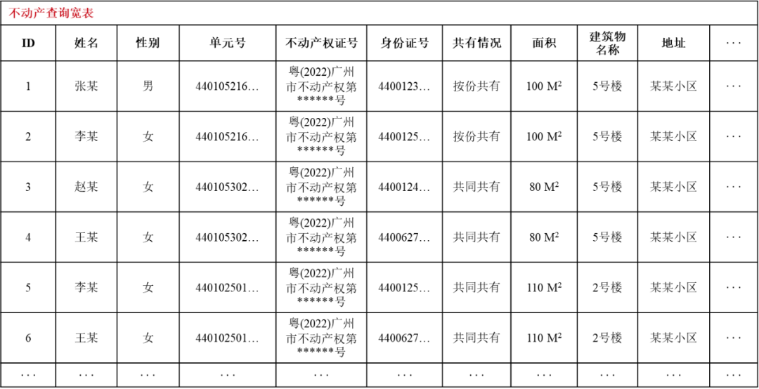 ▲图2 不动产权利人宽表(模拟数据)