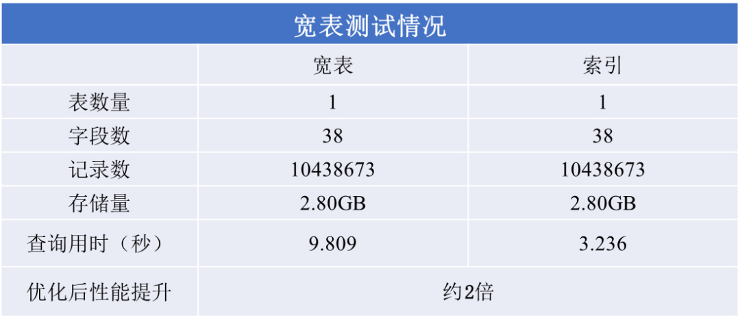 针对宽表应用较多的任意字段组合查询,采用每列独立索引,保障读写性能的均衡。例如,在PG数据库中,针对宽表进行索引创建优化后,性能提升约2倍。
