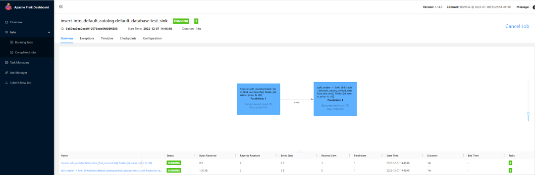 将刚才起的长任务关掉,重新执行刚才的insert语句,先跑一下历史数据,最后再验证一下增量效果