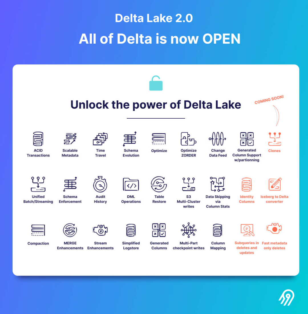 Delta Lake 2.0: [https://www.databricks.com/blog/2022/06/30/open-sourcing-all-of-delta-lake.html](https://www.databricks.com/blog/2022/06/30/open-sourcing-all-of-delta-lake.html)[57]