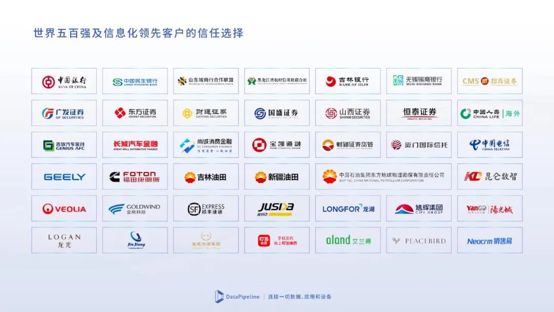 作为“专精特新”企业,DataPipeline的“专”体现为在数据管理产品领域的专业化,坚持技术驱动,深耕企业服务;“精”是重视用户生命周期价值,以客户为中心、数字化体系化的精细化经营理念;“特”表现为秉承DataOps理念打造新型数据基础设施,通过持续构建端到端数据链路,让数据随需可得,使用户专注数据价值释放;“新”体现为深厚自研的基础架构,新型数据基础设施领域最佳实践,获得包括多家世界五百强企业在内的数百家客户认可。