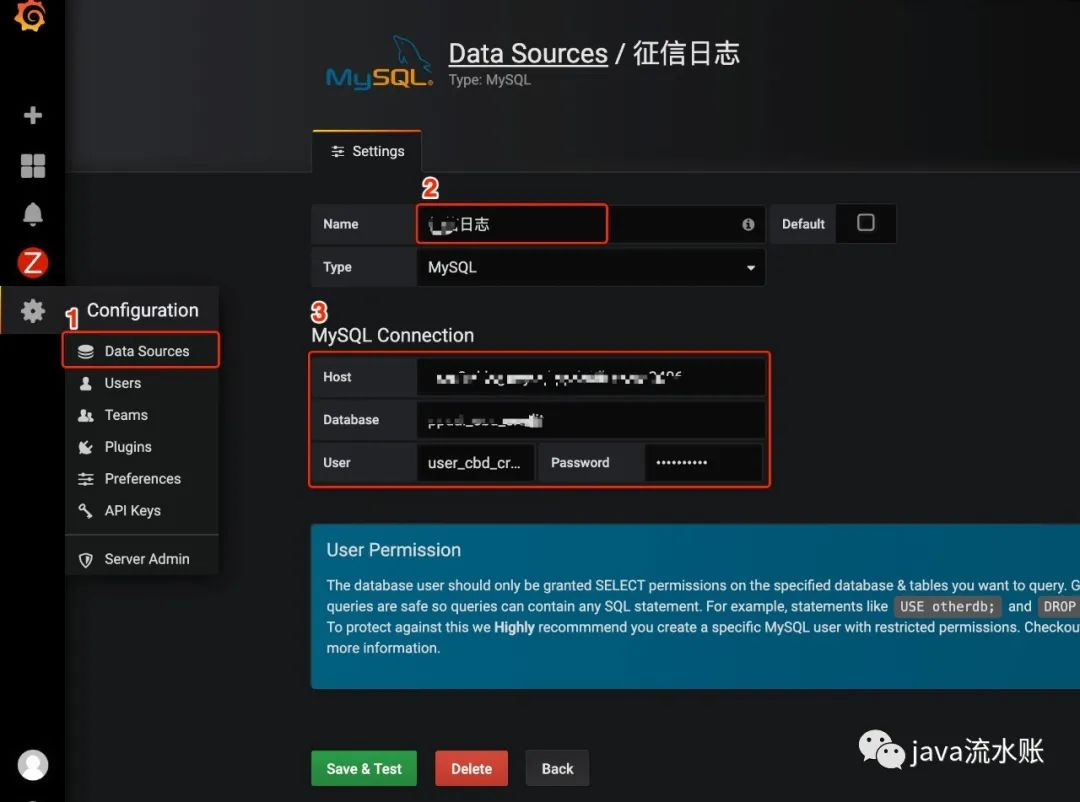Grafana的安装网上教程很多,大家如果公司没有可以测试环境自己搭一个,有的申请一个账号,我们直接开始安装后的数据源配置,步骤如下: