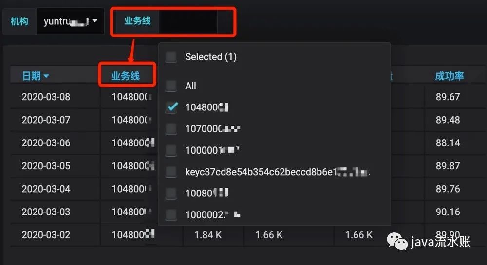 业务线可以指定,查看指定的某个或某几个业务线的数据,如下图所示:
