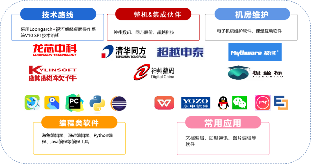 麒麟软件在金华市本地参与建设的中小学国产化电子教室已达到40余间,为110余所学校教师办公电脑提供银河麒麟桌面操作系统办公环境。适配完成教育行业各类应用软件100余款,并针对各中小学校及公立幼儿园信息化分管领导、信息技术教师等进行银河麒麟桌面操作系统理论知识讲解和实操赋能,已累计培训500余人,大幅提高了教师信息化水平。全国产化教育平台也让中小学生全面了解国产软硬件产品,为教育行业国产化起到了良好的示范作用。