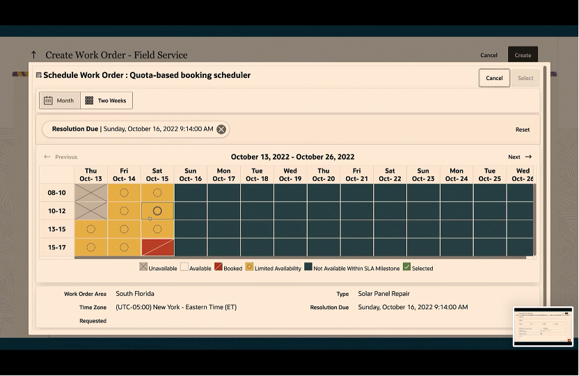 派工页面实时显示符合服务级别协议 (SLA) 的工程师的可用时段,客服只需选择相应时段,就可以完成工单派发,并可实时调用供应链模块中的配件库存。基于一体化的平台架构,服务与供应链无需任何集成,就可以进行实时的数据同步,极大地简化了服务流程。