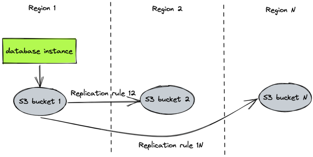 一个 Amazon Web Service (AWS) 帐户最多只能支持 1,000 个存储桶。因此,当过多的数据库实例需要异地冗余备份时,您必须在数据库实例之间定义共享桶。此外,S3 允许您在存储桶上设置生命周期配置以保留数据以控制成本。