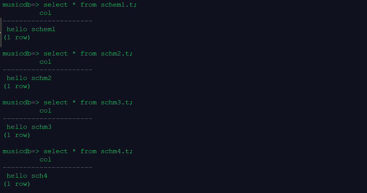 2.然后为数据库musicdb创建4个模式,名称自定义