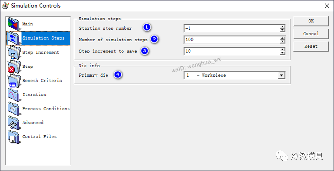 例如,如果起始步骤编号为 -35,并且指定了 30 个步骤,则模拟将在第 65 步之后停止,除非首先触发另一个停止控制。