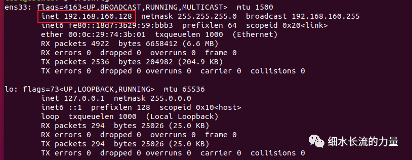 查看虚拟机ip地址,我的ip是192.168.160.128