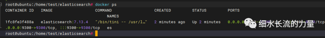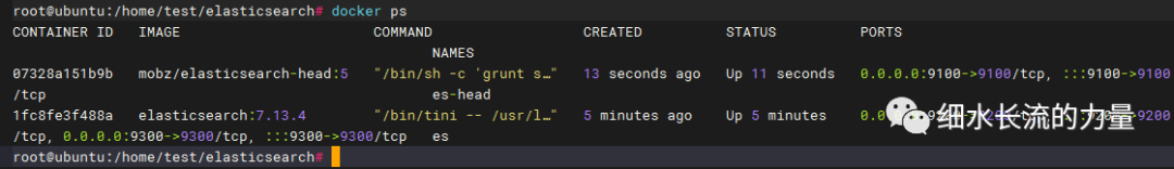 其中es为容器名,-p指定web应用的访问端口,最后一行表示创建容器所使用的镜像版本。