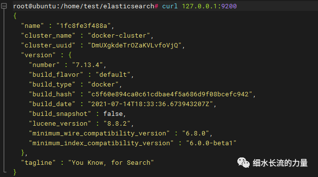 输入curl '127.0.0.1:9200',查看es容器是否启动成功。