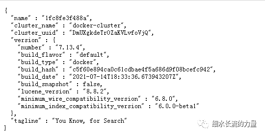 重启容器。打开宿主机浏览器页面,输入“虚拟机ip:9200”,比如我这里是192.168.160.128:9200,浏览器页面出现如下内容,表示安装成功。