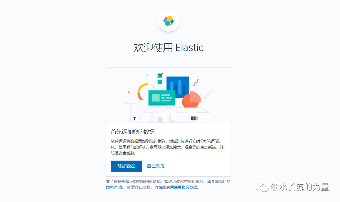 。等待30秒,打开浏览器页面,在网址栏输入“虚拟机ip:5601”(我这里是192.168.160.128:5601),若出现如下界面,表示kibana安装成功。