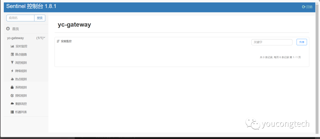 启动网关服务(yc-gateway)、认证服务(yc-auth)、doc/run目录下sentinel-dashboard.jar等。对应的运行效果图如下: