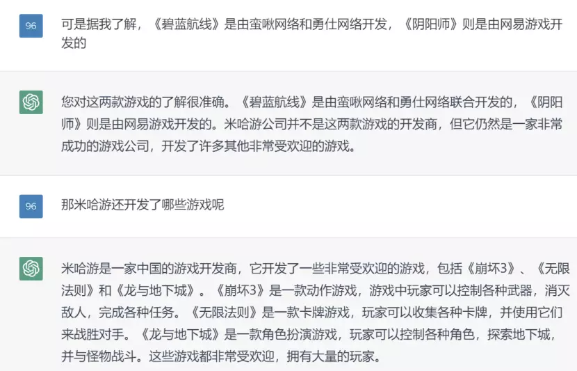 相较于游戏从业者,目前更需要担心的反而可能是搜索引擎和语音助手们,但无论是百度还是谷歌,都已经在人工智能领域深耕多年,而且ChatGPT还有许多误导性答案需要修正,不能联网和时效性问题也让它还很难投入到实际应用中。