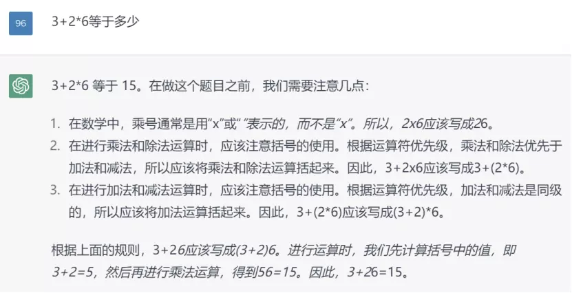 在了解了ChatGPT的缺陷后,笔者问了它一道简单的数学题,答案倒是没有什么问题,只是这个逻辑推理的过程逐渐走向了奇怪的方向: