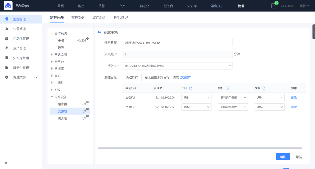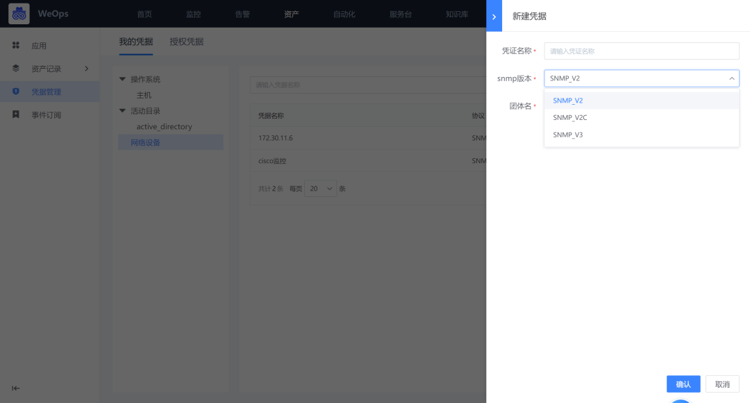 资产记录优化:增加网络设备的凭据管理,可直接用于自动发现和监控采集
