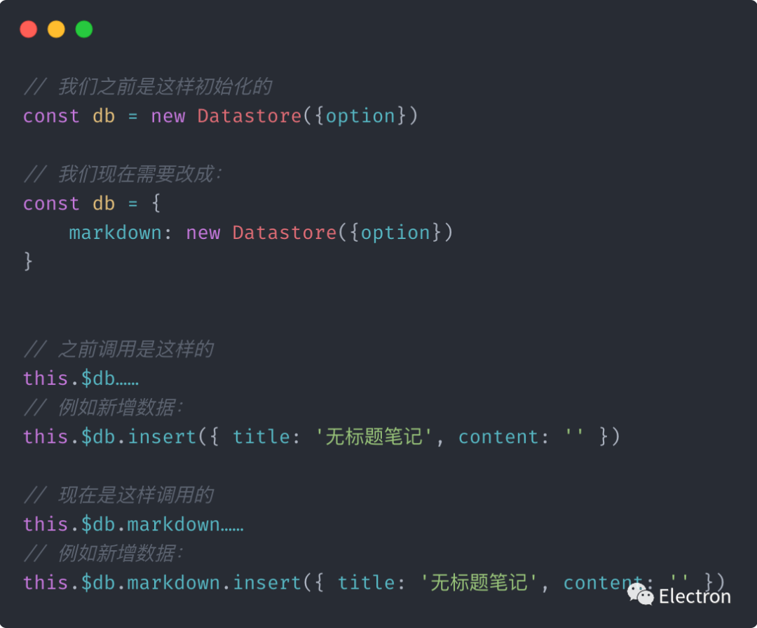 其实就是加了个命名空间,创建多个数据存储,这样改造是为了后续开发其它功能的时候可以方便存储数据,而不用跟 Markdown 文件的存储混合在一起。