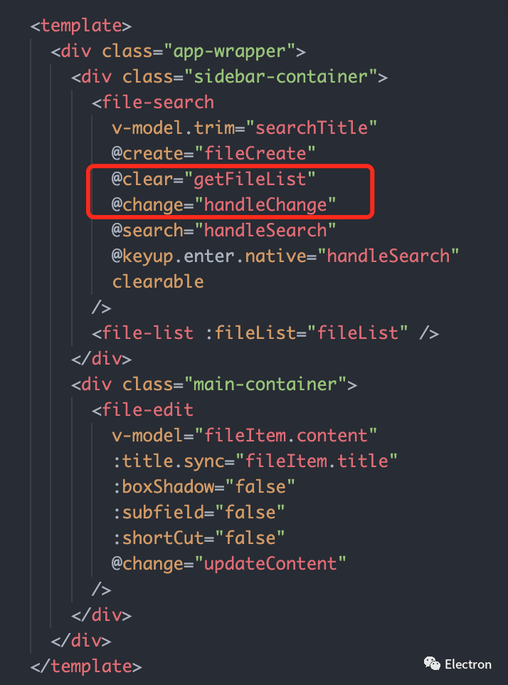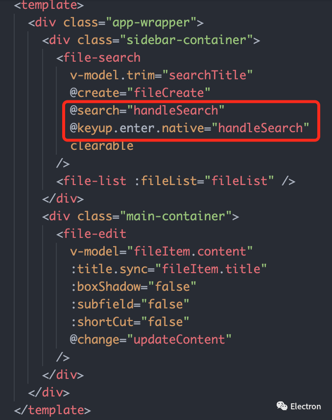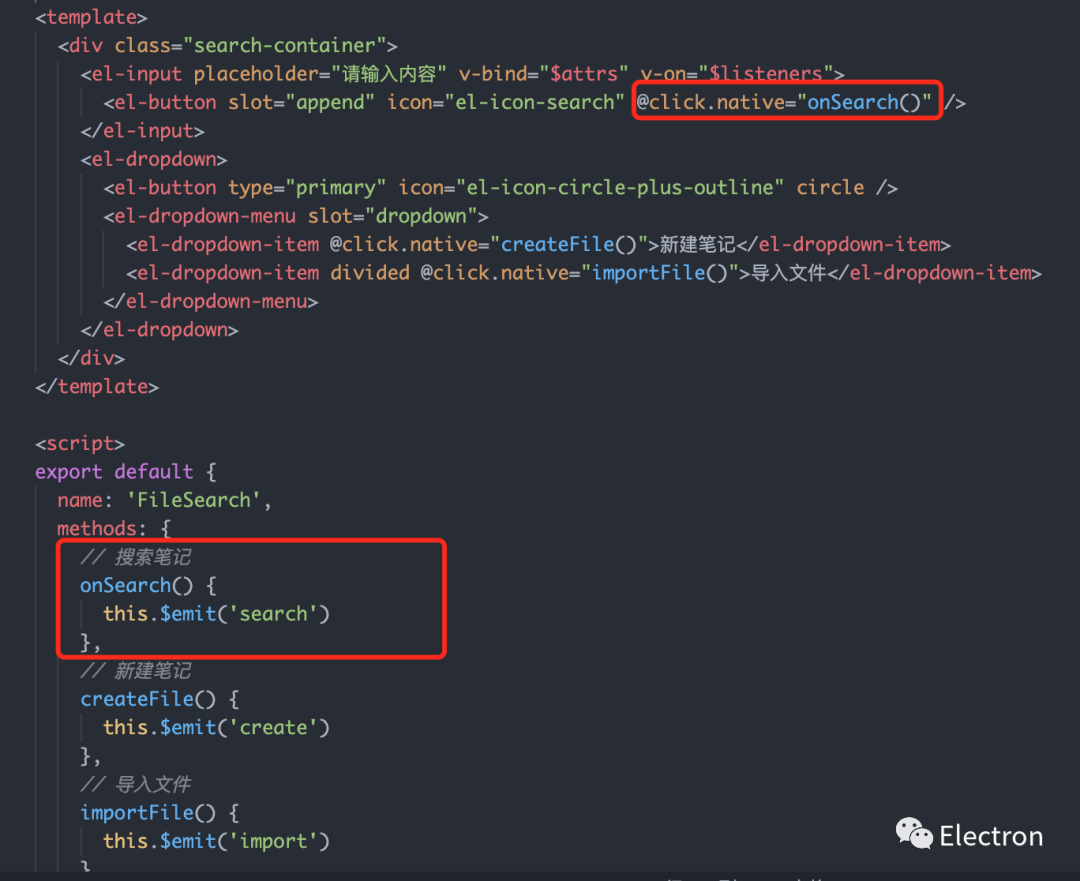 搜索笔记组件,我们需要给它添加一个执行搜索的 $emit :