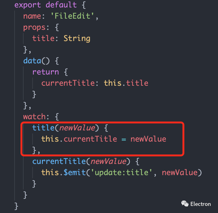 ,这样会导致的问题是它永远只展示了第一次传进来的数据,后面的它就不更新了,所以这里我们需要给 props 的title