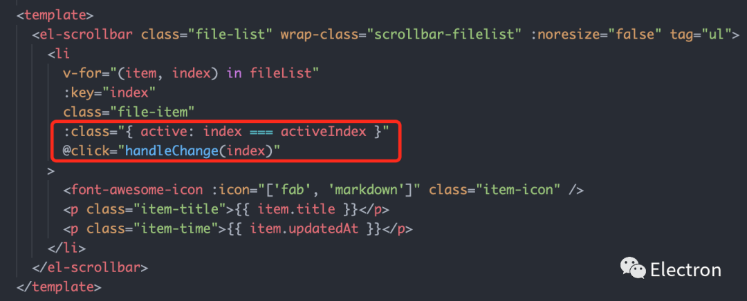 但是我们不仅要在点击的时候高亮,创建新笔记的时候会默认打开第一个笔记,这时候第一个笔记在列表中应该是高亮的,所以FileList