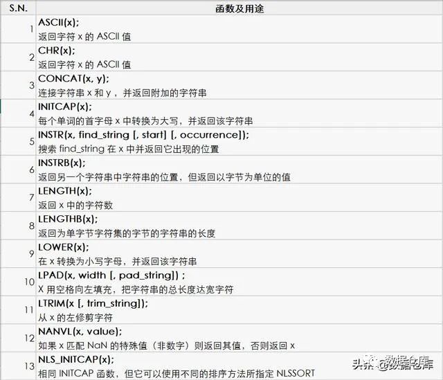 PL/SQL 字符串函数和操作符