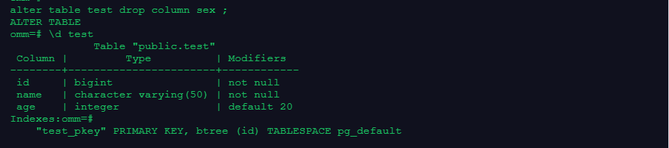 alter table test drop column sex ;