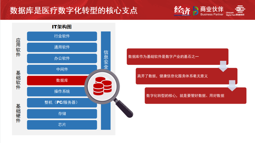 数字化转型的核心,就是要管好数据、用好数据。数据库作为基础软件中最核心的部分,既是数字产业的基石之一,更是医疗数字化转型的核心支点。