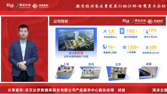 由经济日报指导,《经济》杂志社主办、B.P商业伙伴和联通数科、中国联通科学技术协会联合主办的“数字经济高质量发展行动计划暨百位专家&百家媒体共话数字化转型系列活动”之智慧医疗论坛已于12月8日下午线上举办。武汉达梦数据库股份有限公司(以下简称“达梦数据”)技术服务中心副总经理胡俊受邀出席并发表主题为
