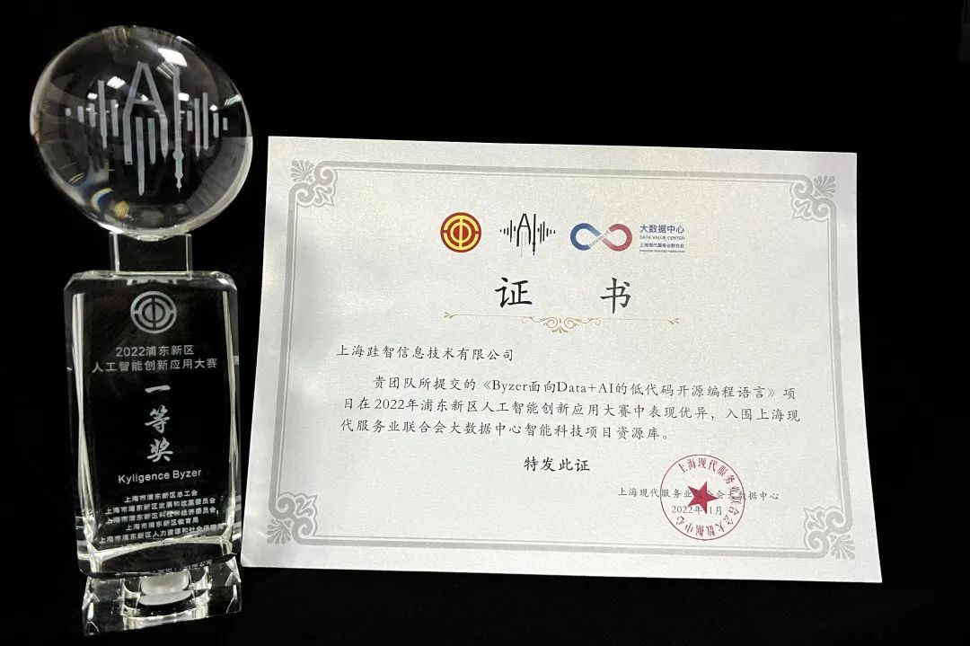 近日,2022 浦东新区人工智能创新应用大赛圆满闭幕。经过层层筛选和考核,跬智信息(Kyligence)从 113 支团队中脱颖而出,参赛项目“Byzer 面向 Data+AI 的低代码开源编程语言”在技术创新性、创意性以及项目的可落地性、可复制性、可推广性等方面得到了评审专家的高度认可,最终荣获大赛一等奖。