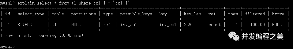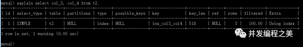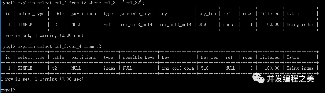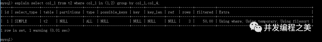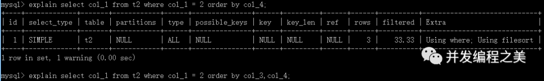 explain select * from t2where col_3 = 'col_32' and col_4 = 'col_42';
