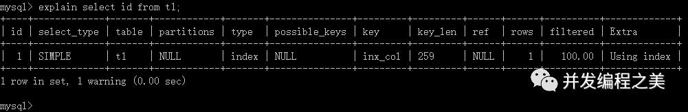 某个索引的列覆盖了查询条件,即可以使用索引覆盖避免访问聚集索引,这时extra列会显示"using index"