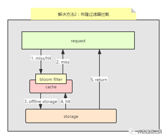 最常见的则是采用布隆过滤器,将所有可能存在的数据哈希到一个足够大的bitmap中,一个一定不存在的数据会被 这个bitmap拦截掉,从而避免了对底层存储系统的查询压力。