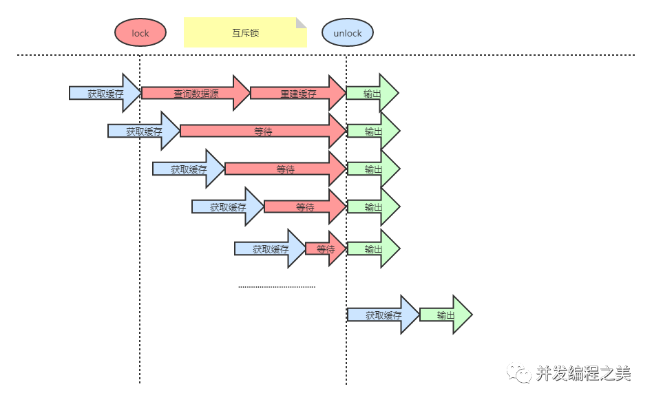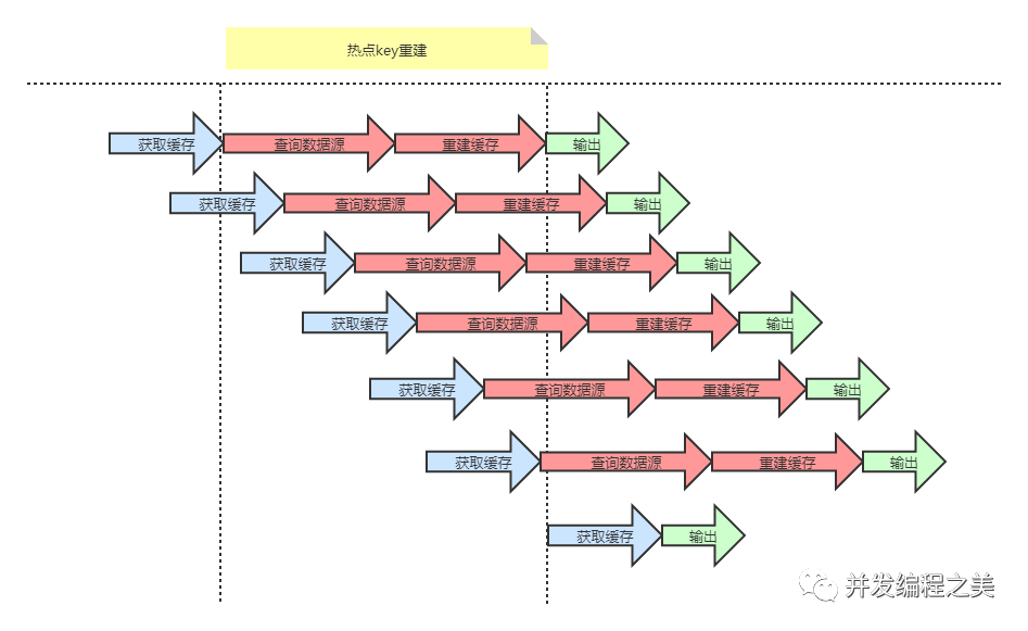 存在问题:大量的线程都会做缓存重建和查询数据源。