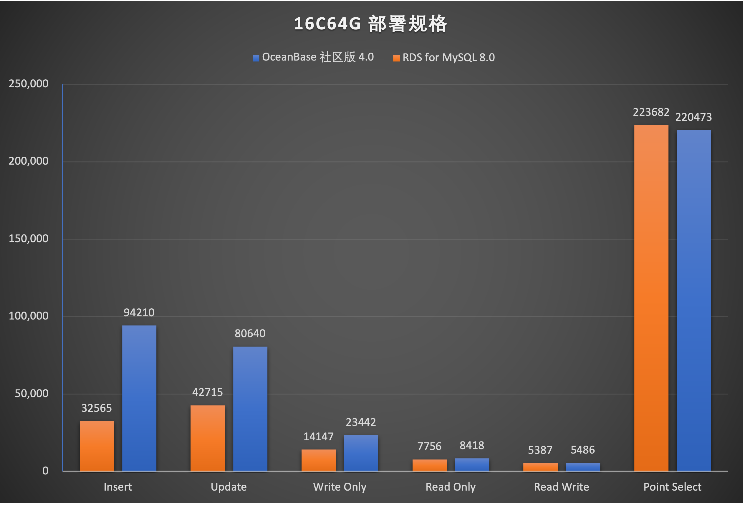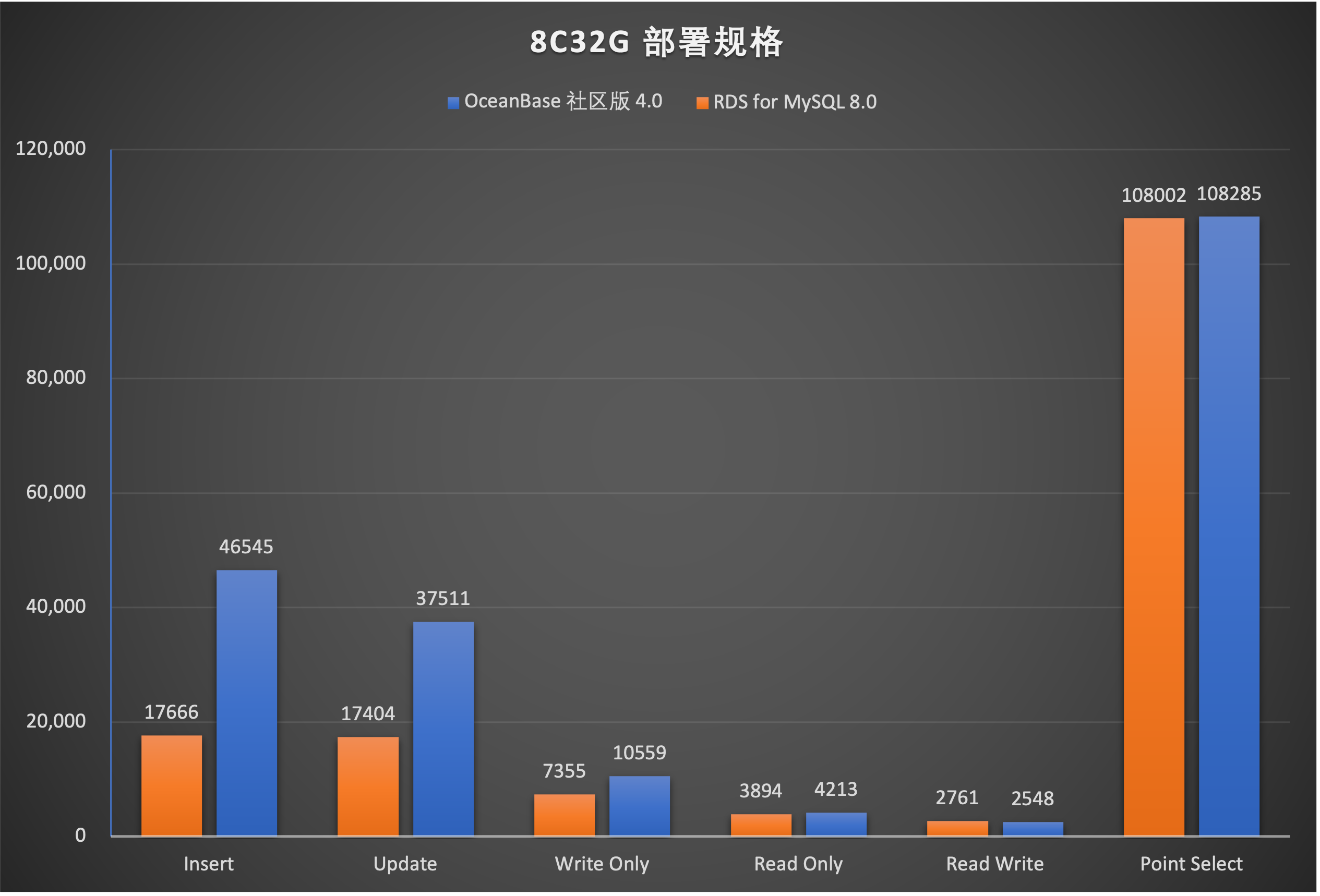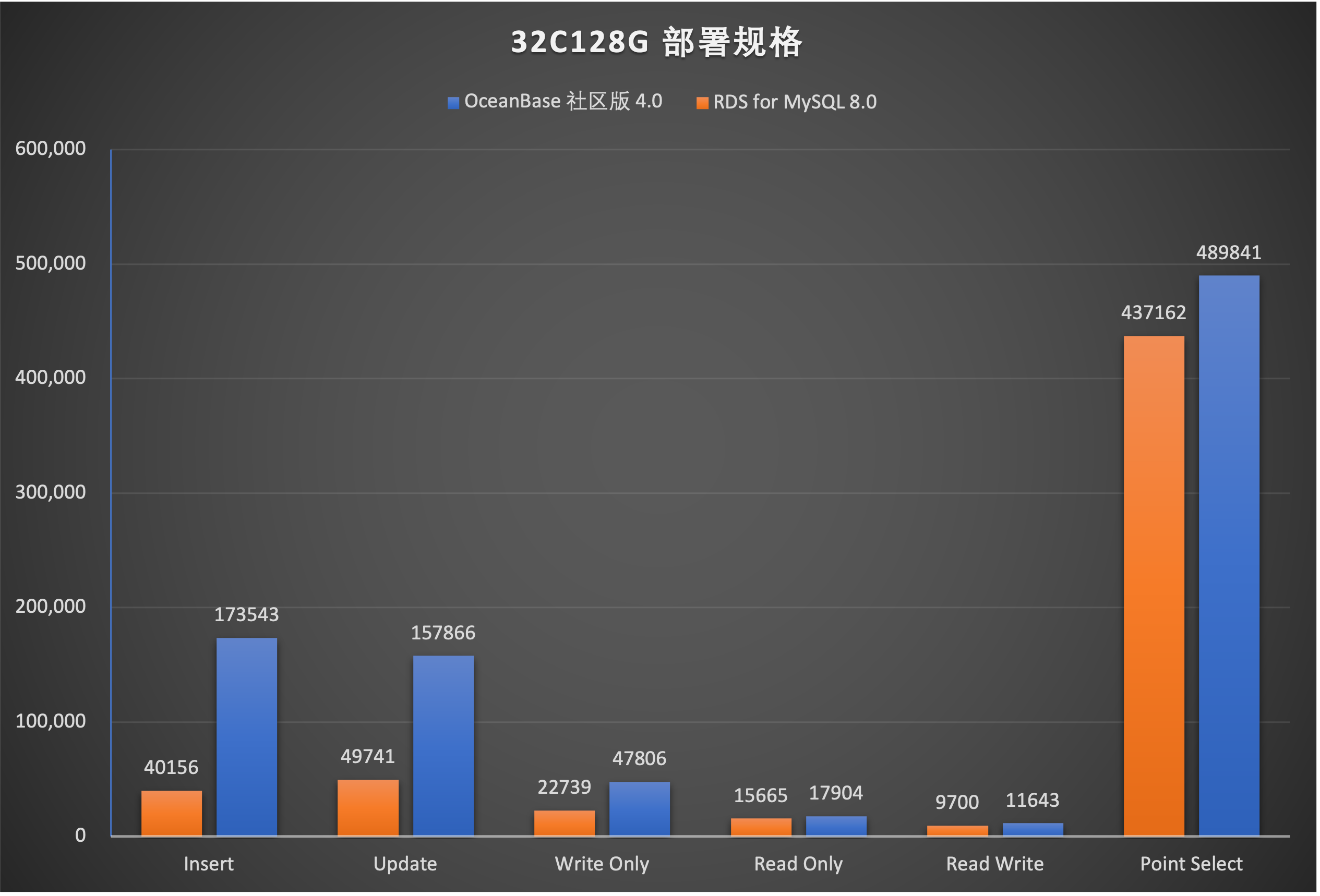 图6 OceanBase 社区版 4.0 & RDS for MySQL 8.0 Sysbench 性能测试结果(吞吐量)