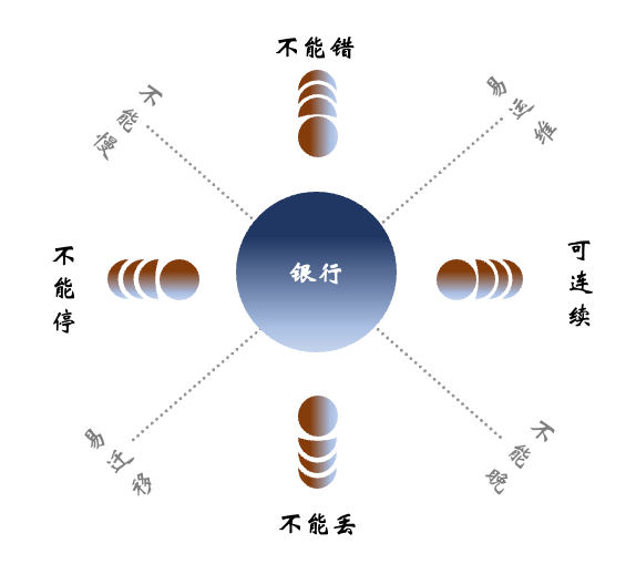 我国金融机构信息化建设起源于银行,也壮大于银行。数据库作为基础设施的核心,支撑了银行对数据存储和处理的各种需求。银行核心业务系统对数据库的各项要求,有专家总结对数据库要求是:账务不能错,数据不能丢;应用不能停,业务可连续;联机不能慢,跑批不能晚;数据易迁移,运维要简便。