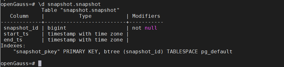 snapshot.snapshot 【记录当前系统中存储的WDR快照信息】
